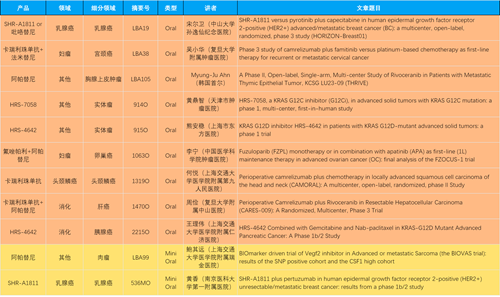 在消化系统肿瘤领域,恒瑞产品相关研究共入选2项口头报告、11项壁报和1项电子壁报,共14项研究。除卡瑞利珠单抗和阿帕替尼外,还有4篇阿得贝利单抗治疗消化系统肿瘤研究入选。HRS-4642、瑞拉芙普-α注射液(SHR-1701)等在研创新产品也有相应研究亮相。另有1项伊立替康脂质体(II)用于胰腺癌治疗的研究入选壁报。
