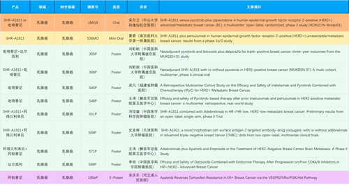 在乳腺癌领域,恒瑞创新产品相关研究共入选1项口头报告、1项简短口头报告、8项壁报和1项电子壁报,共11项研究。吡咯替尼、达尔西利、阿得贝利单抗、瑞康曲妥珠单抗等新老创新药物,均有多篇研究入选,展现出918搏天堂在乳腺癌领域多年深耕的丰硕成果。